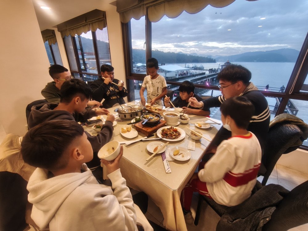 住宿也是弱勢學生難得的體驗,簡單的背包客棧竟是學生口中的高級套房,晚餐承蒙明月湖旅店的打折招待,讓學生在湖景第一排吃高級桌餐,辛苦的健走加上美味的菜餚,大家不但把所有的菜都掃空,每桌都還加了兩次白飯。