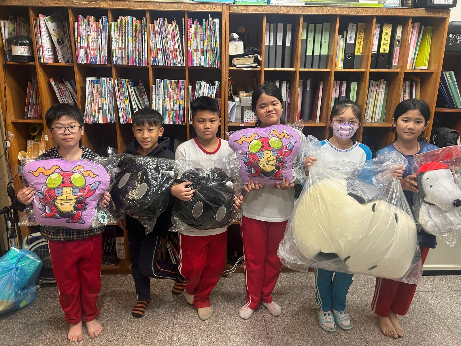 感謝 睿誼國際有限公司,贈與本會絨毛娃娃、抱枕、冷熱敷袋、造型存錢筒、抱毯、特大傘等物資共97件,作為兒童節禮物提供本會勢學生。